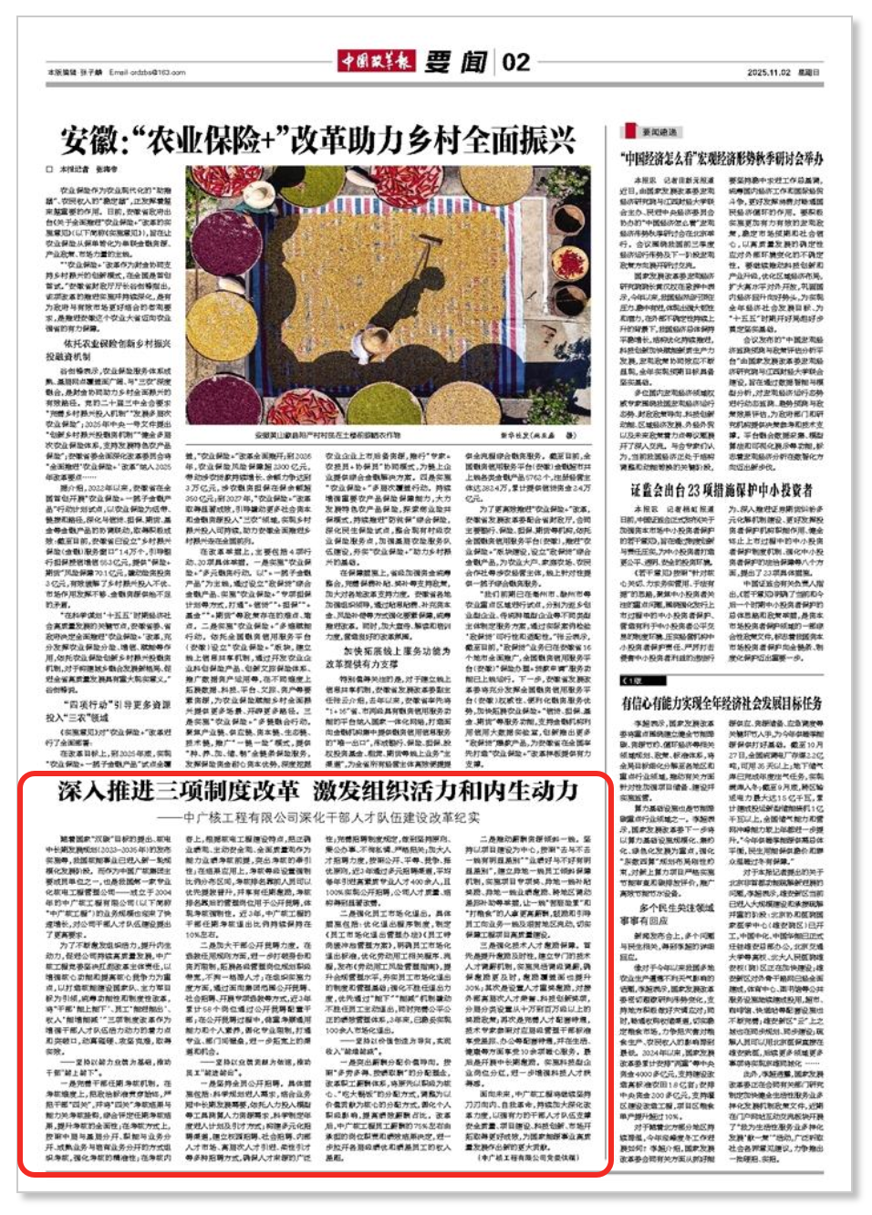近日,《中國改革報》以《深入推進三項制度改革 激發組織活力和內生動力》為題,聚焦報道中廣核工程有限公司深化干部人才隊伍建設...